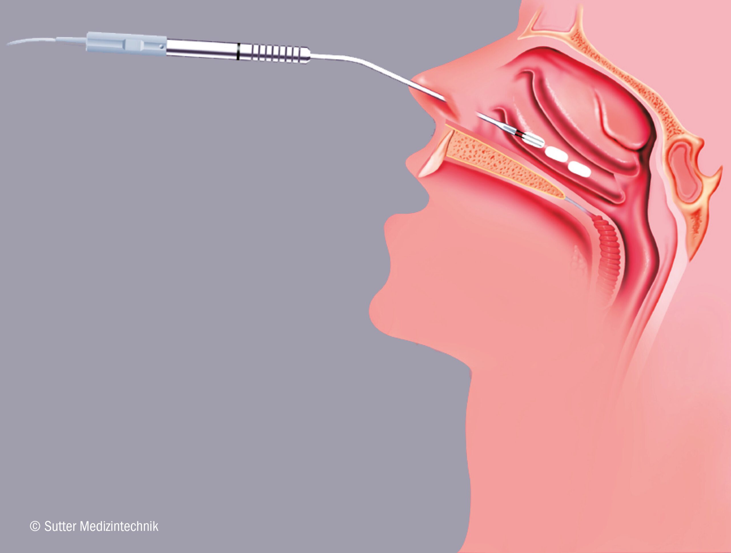 Nach örtlicher Betäubung mit Nasenspray wird bei der Radiofrequenztherapie das intermediäre Schwellgewebe moderat und sanft verkleinert beziehungsweise verödet.